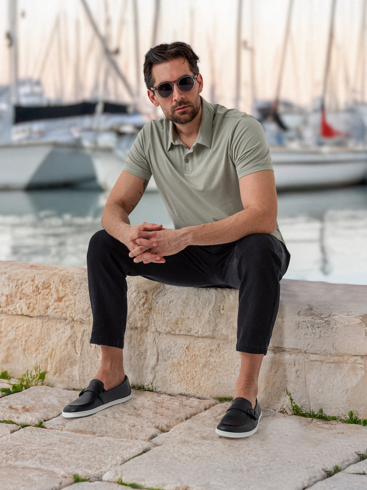 Amadeus moccasins for men combine minimalism with comfort. They are available in Black & White. The moccasins are decorated with a buckle, which you can match, for example, with an elegant belt. The Amadeus model is ready for every challenge – from important business meetings to weekend strolls. Choose your own way, express your unique taste.