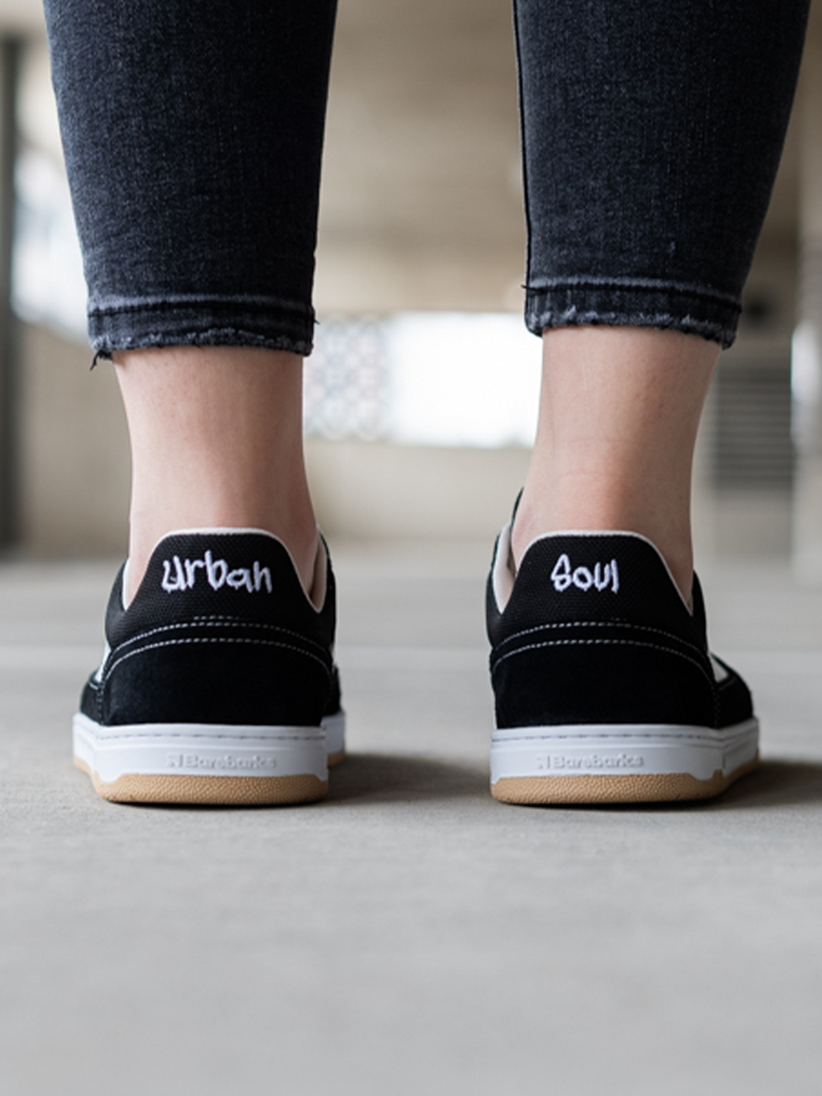 Meet the legends among barefoot sneakers! Barebarics Legend in Black & White are inspired by the relaxed world of skateboarding. We combined leather and textile for all those who want to wear sneakers all year round. We also added a bold embroidered Urban Soul detail and a stylish textile logo on the shoe tongue. Walk confidently. Feel the freedom. Let your Urban Soul shine.