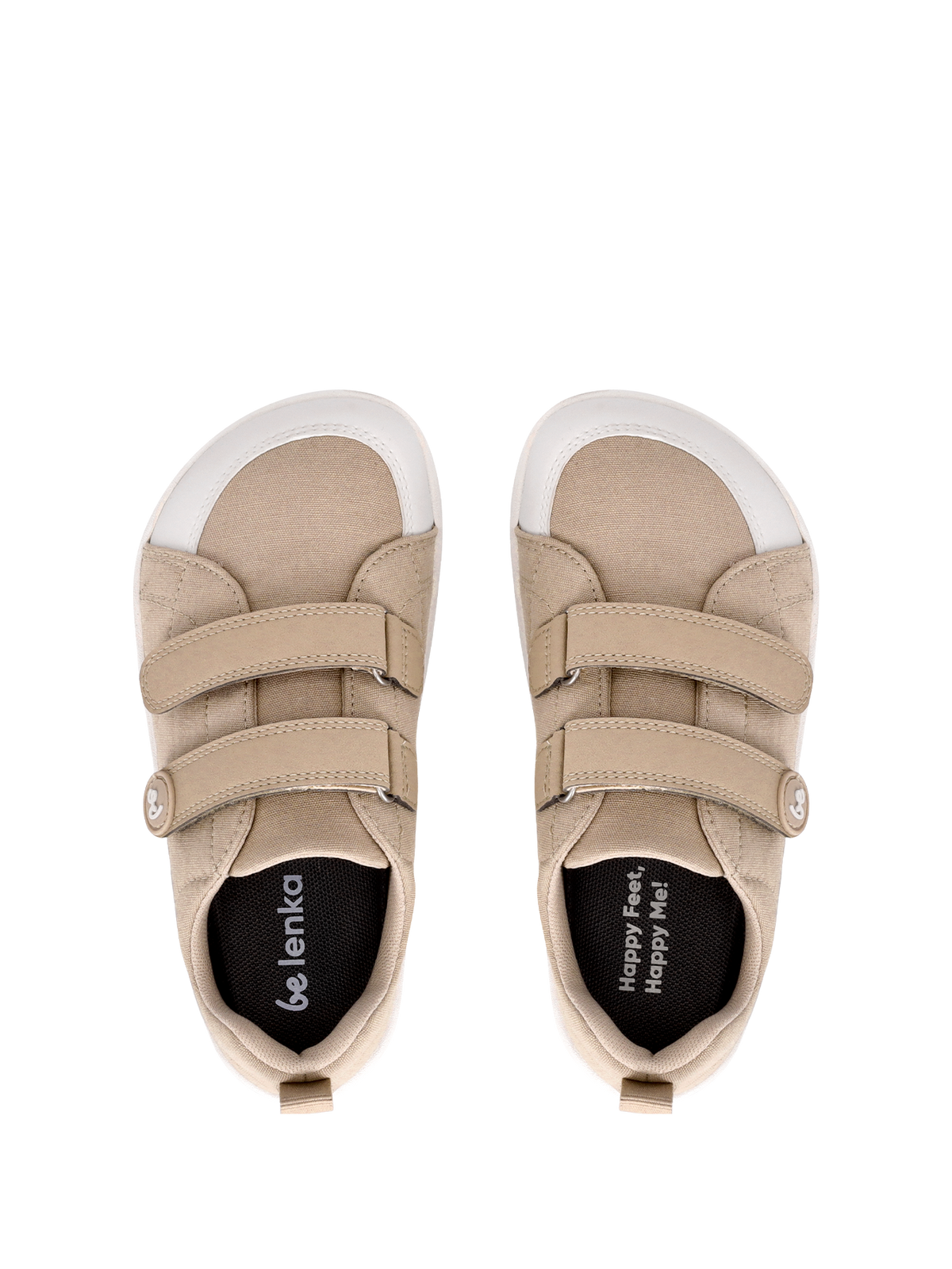 Be Lenka Canvi in light brown colors are the first textile barefoot sneakers from the Be Lenka Preschool collection. Designed for your child's comfort even on hot summer days. The lightweight and breathable construction allows little feet to breathe, while the playful colors immediately capture children's attention. Two Velcro straps and a heel loop ensure quick and easy wear. Vegan materials, a reliable PebbleComfort sole, and a generous toe box make Canvi the perfect summer sneakers for every adventure.