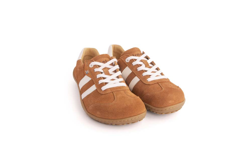 I am Ila Suede, a casual retro 80s-inspired trainer designed with a barefoot shape and a medium toe-box on a Cristine Bare-based sole offering ample room for toes to wiggle and spread comfortably, without compromising a relaxed and vintage look, ensuring that style and comfort can work together. My upper materials are made with two layers of Suede with two diagonal stripes on the side for a unique vibe that translates as being ultra cozy. My lining is chrome-free leather which means that I am breathable and when you put me on, you will feel unbeatable, whether you´re a nature lover, a city seeker, or a person who loves chasing sunsets, I am the right fit for you! I'm the sneaker that can keep up with your every stride.