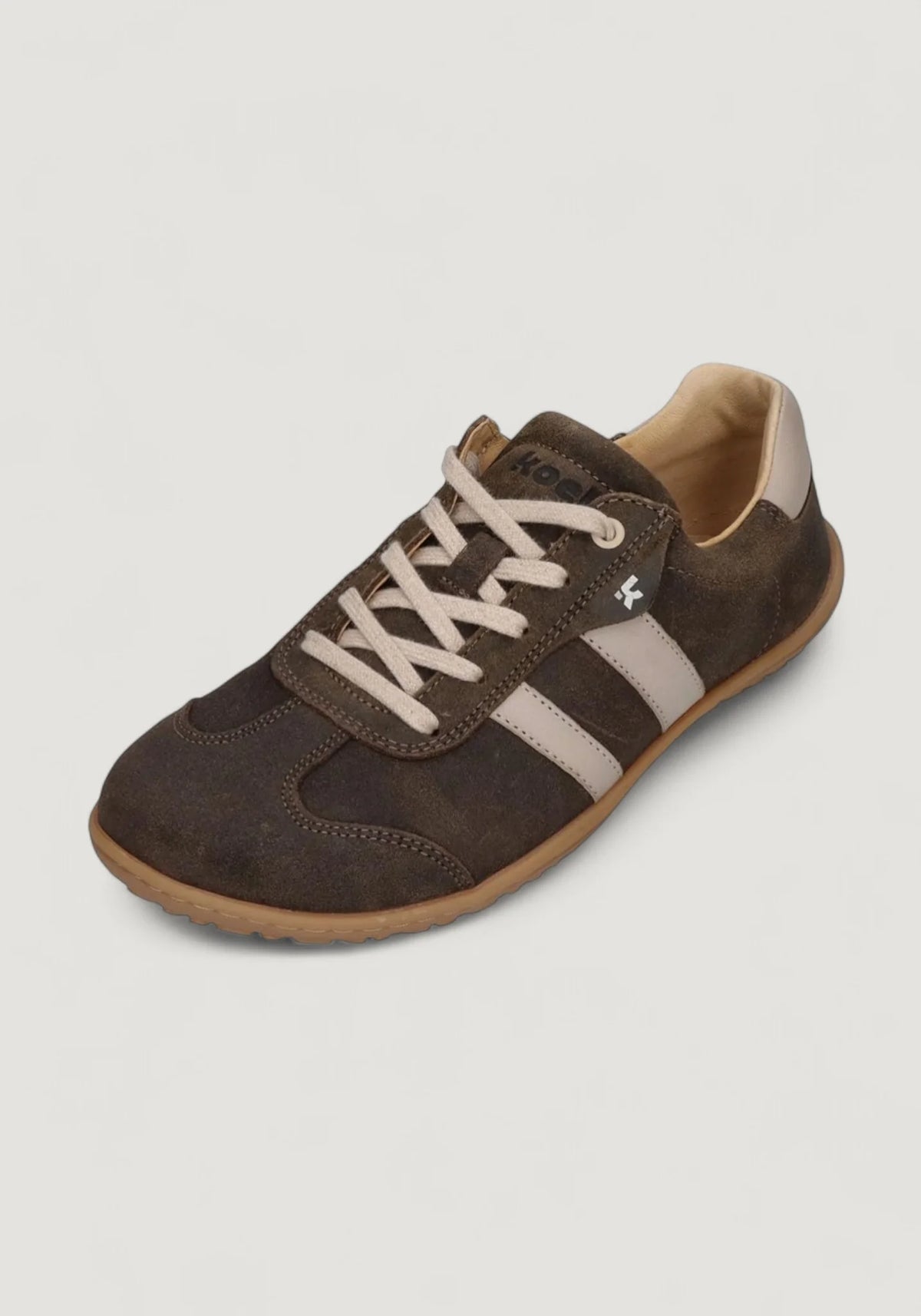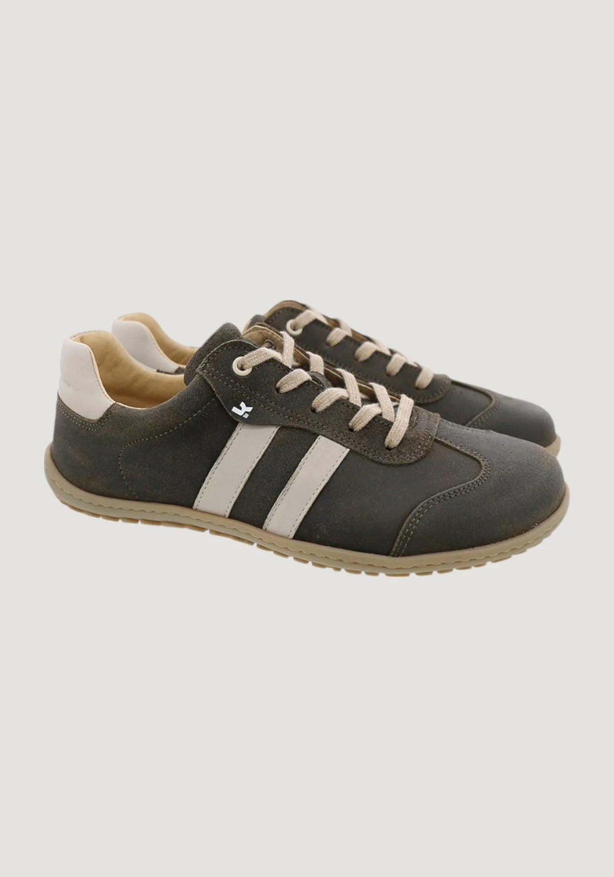 I am Ilo Suede, a casual retro 80s-inspired trainer designed with a barefoot shape, a medium toe-box on a Cristine bare-based sole offering ample room for toes to wiggle and spread comfortably, without compromising a relaxed and vintage look, ensuring that style and comfort can work together. My upper materials are made with two layers of Leather Suede with two diagonal stripes on the side for a unique vibe, ultra cozy and a very silky softness, fits perfectly like a glove. My lining is Chrome-free Leather, which means that I am breathable and when you put me on, you will feel unbeatable, whether you´re a nature lover, a city seeker or a person who loves chasing sunsets, I'm the sneaker that can keep up with your every stride!