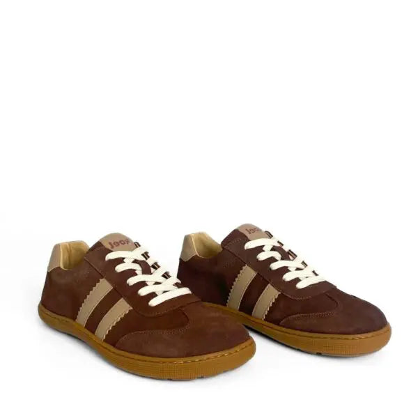 I am Francie II, a timeless retro 70s-inspired trainer designed with a barefoot shape and a wide toe-box on a Bernardo Ladies based-sole offering ample room for toes to wiggle and spread comfortably, without compromising a relaxed and vintage look, ensuring that style and comfort can go side-by-side. My upper materials are Suede leather with a soft-touch and Napel that combines elegance with white details. My lining is chrome-free leather, which is suitable for all seasons and the insole is removable to help with odors and breathability. I'm your lightweight buddy, with an ultra-flexible sole in all directions, lace-up closure and without heel counter, encouraging the natural strengthening of the muscles. I´m your soulmate that looks regular but thinks as an outsider!